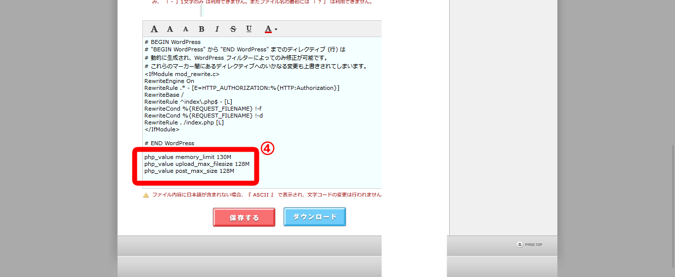 ロリポップ WordPressのアップロードサイズの上限を変更 ステップ7